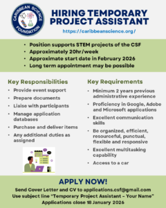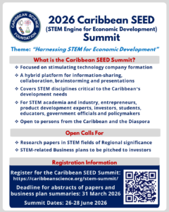 - Provide scientific and engineering advisory services to Caribbean governments by working with the Caribbean Diaspora for Science, Technology and Innovation (CADSTI) to leverage the expertise that resides in the Diaspora.