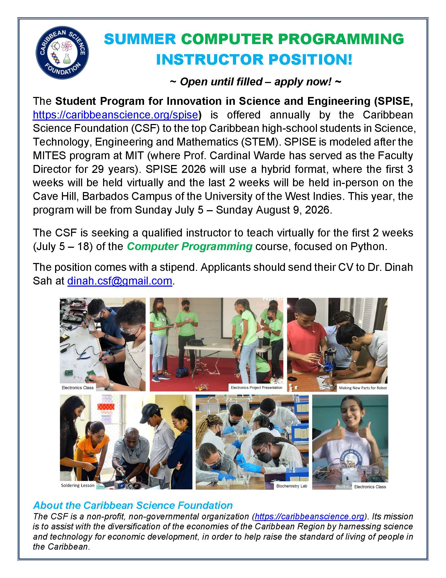 - SPISE alumni attending prestigious universities, including MIT, Caltech, Stanford, Harvard, Princeton, Columbia, Yale, Dartmouth, Cornell, Johns Hopkins, Carnegie Mellon, U Penn, McMaster, UWI