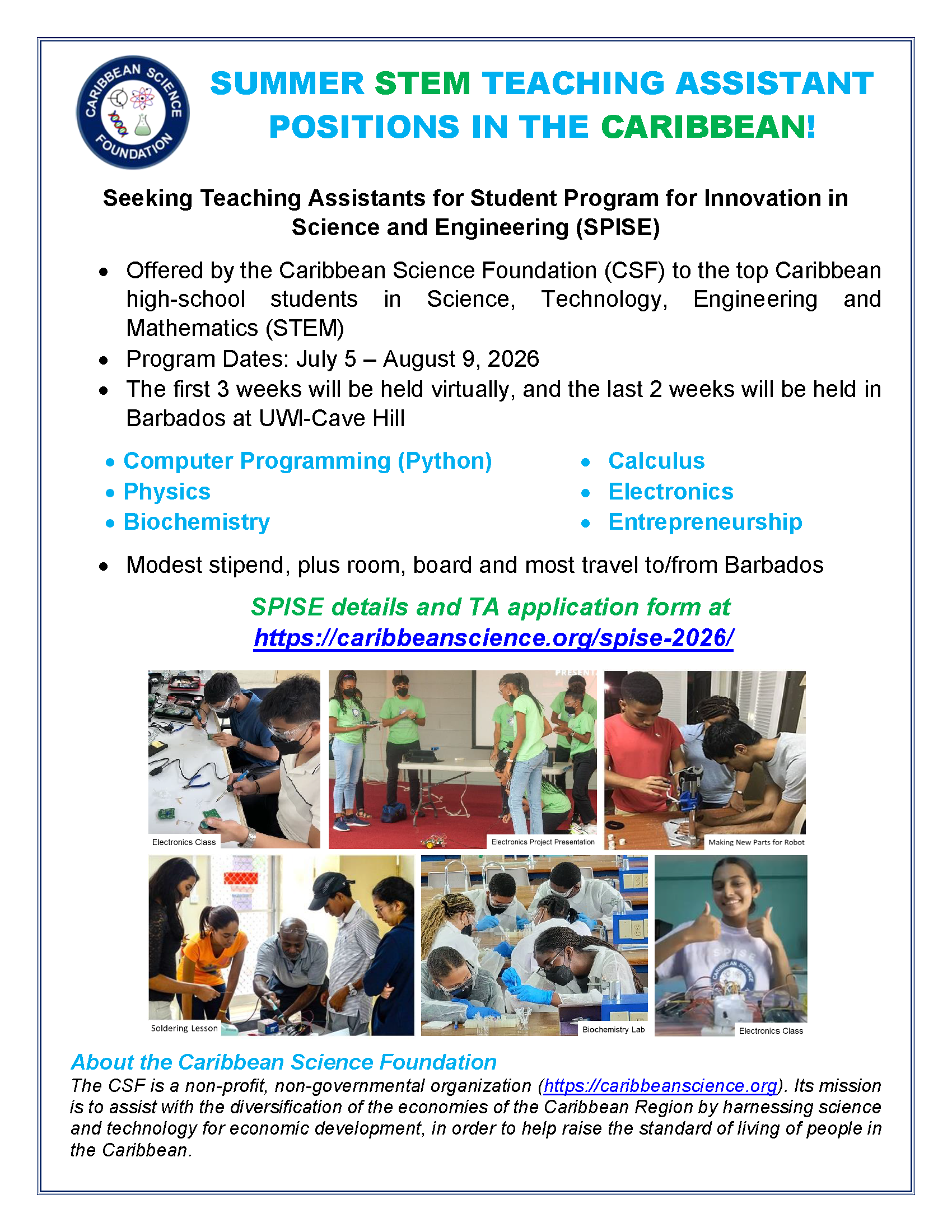 - Promoting and offering STEM (Science, Technology, Engineering and Math) programs including robotics camps and computer coding workshops for Caribbean youth